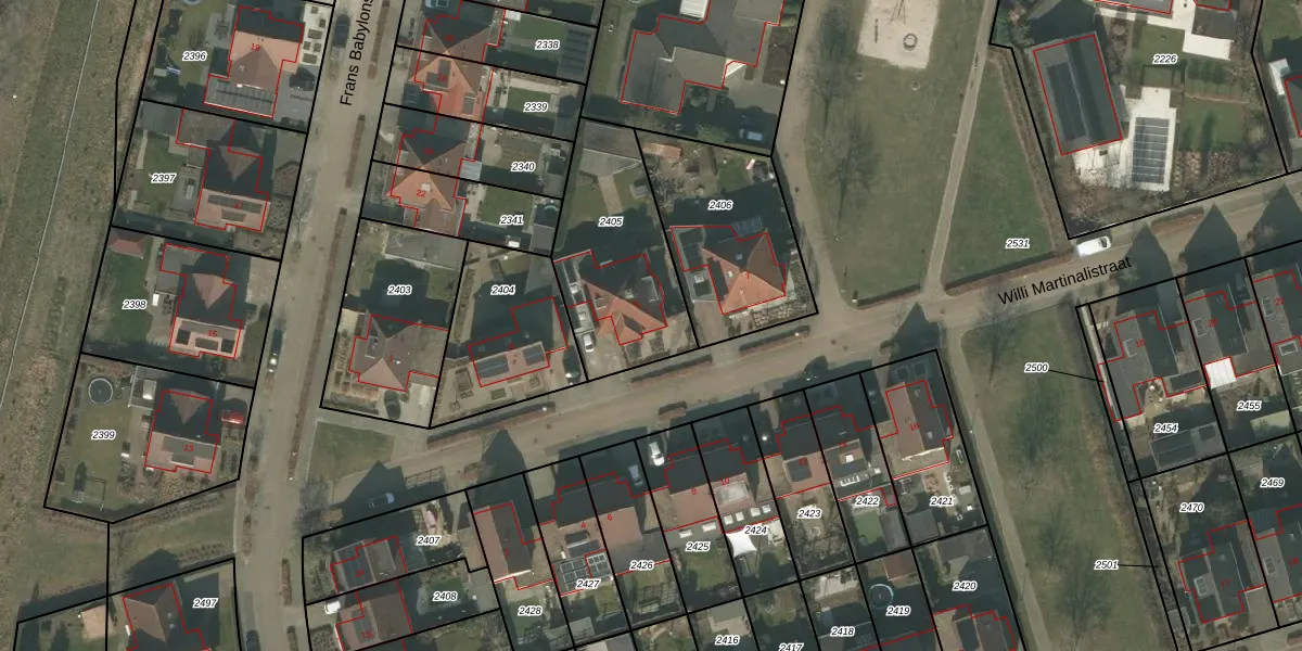 Gebruik de zoekbalk of klik op een perceel voor informatie over de adressen binnen dit perceel.