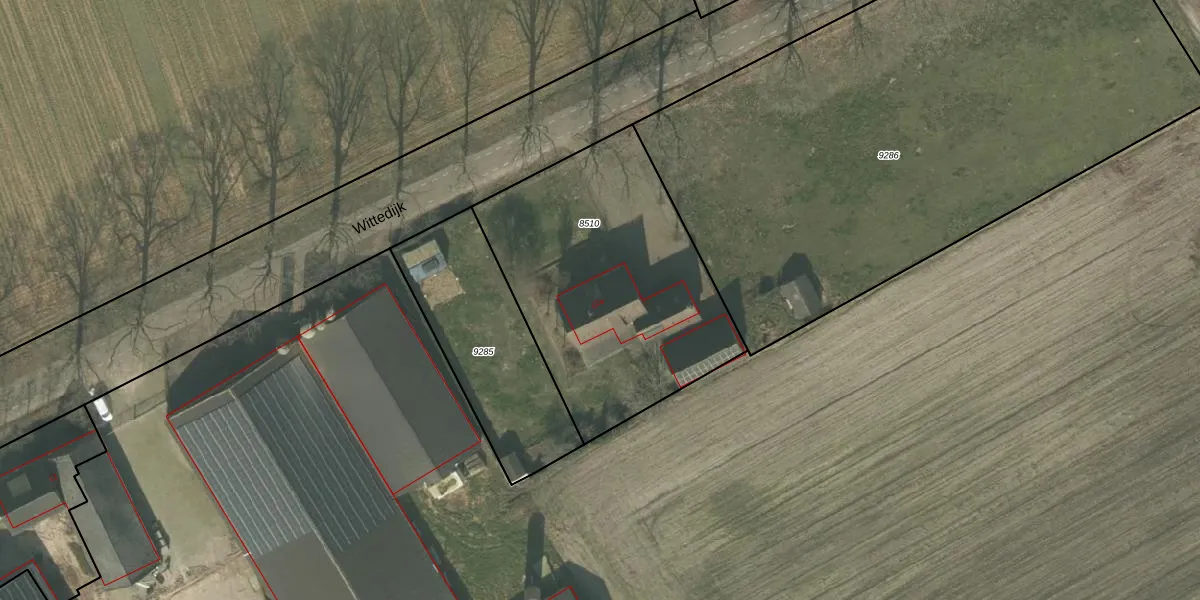 Wittedijk 12-a is gelegen op kadastraal perceel DNE00H8510. Deze kadastrale aanduiding is uniek en wordt gebruikt door het Kadaster om eigendomsrechten en andere zakelijke rechten vast te leggen. Het perceel maakt onderdeel uit van de kadastrale gemeente Deurne.