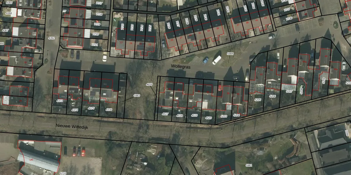 Wollegras 32 is gelegen op kadastraal perceel DNE00L4518. Deze kadastrale aanduiding is uniek en wordt gebruikt door het Kadaster om eigendomsrechten en andere zakelijke rechten vast te leggen. Het perceel maakt onderdeel uit van de kadastrale gemeente Deurne.
