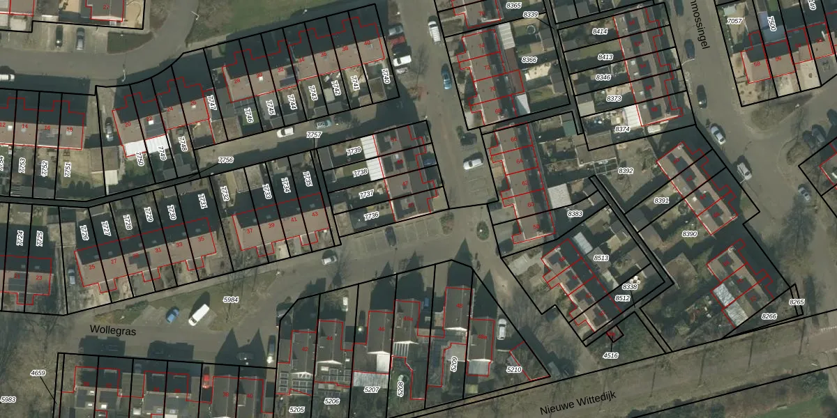 Wollegras 45 is gelegen op kadastraal perceel DNE00L7736. Deze kadastrale aanduiding is uniek en wordt gebruikt door het Kadaster om eigendomsrechten en andere zakelijke rechten vast te leggen. Het perceel maakt onderdeel uit van de kadastrale gemeente Deurne.