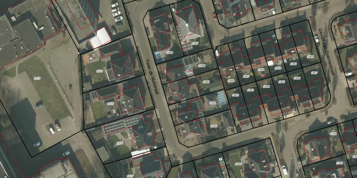 Ywan de Molstraat 10 is gelegen op kadastraal perceel DNE00K1685. Deze kadastrale aanduiding is uniek en wordt gebruikt door het Kadaster om eigendomsrechten en andere zakelijke rechten vast te leggen. Het perceel maakt onderdeel uit van de kadastrale gemeente Deurne.