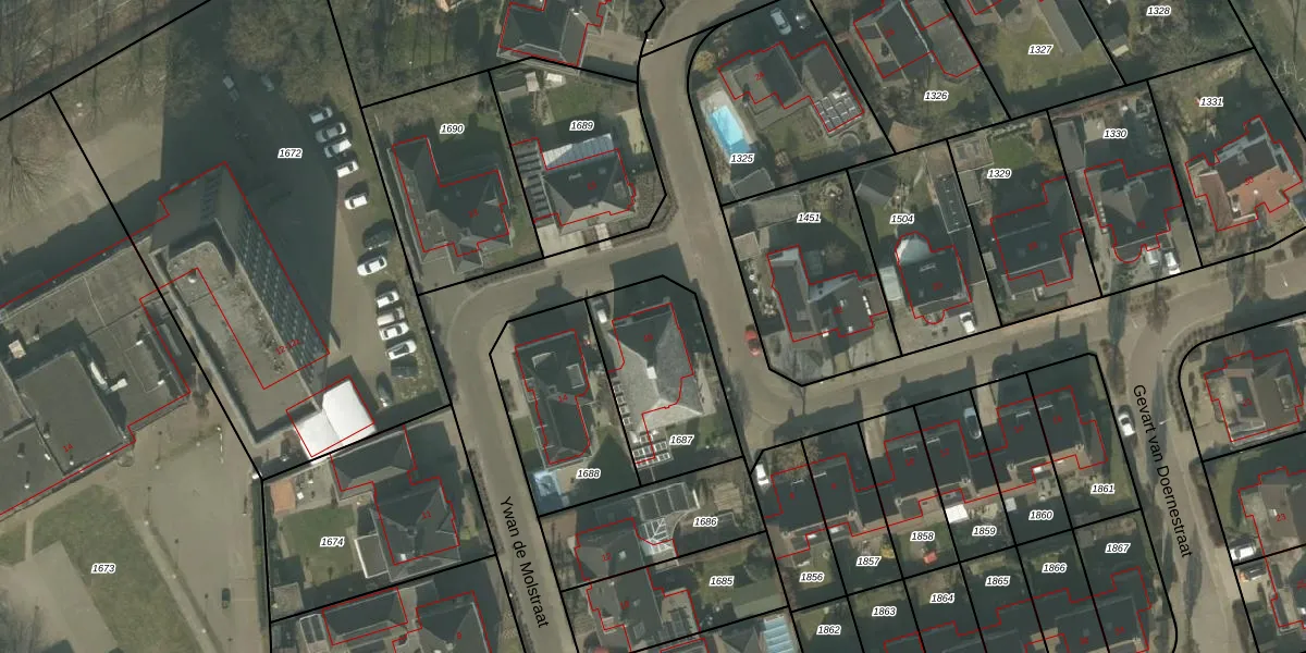 Ywan de Molstraat 16 is gelegen op kadastraal perceel DNE00K1687. Deze kadastrale aanduiding is uniek en wordt gebruikt door het Kadaster om eigendomsrechten en andere zakelijke rechten vast te leggen. Het perceel maakt onderdeel uit van de kadastrale gemeente Deurne.