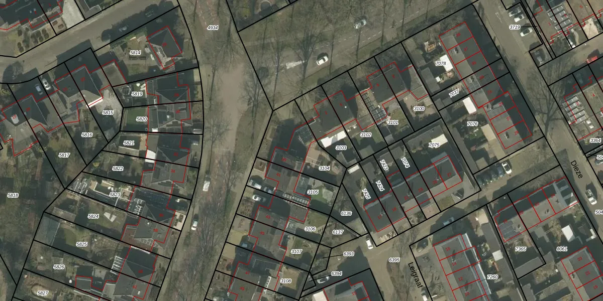Gebruik de zoekbalk of klik op een perceel voor informatie over de adressen binnen dit perceel.