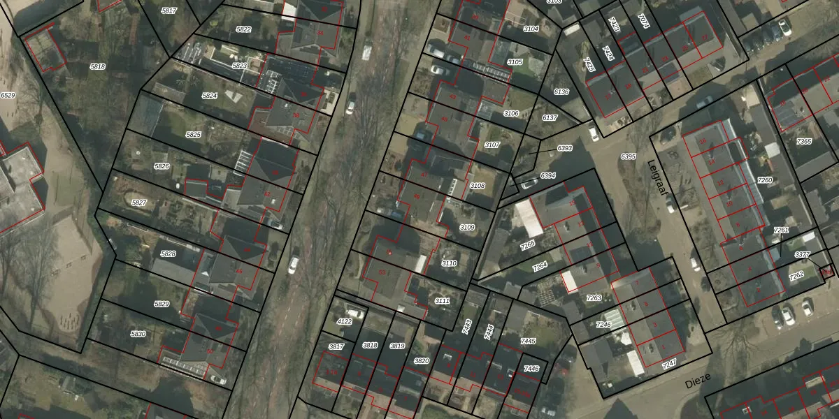 Gebruik de zoekbalk of klik op een perceel voor informatie over de adressen binnen dit perceel.