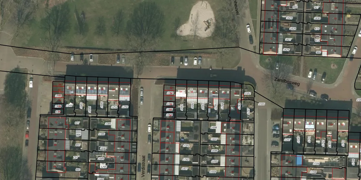 Zandbosweg 34 is gelegen op kadastraal perceel DNE00M1691. Deze kadastrale aanduiding is uniek en wordt gebruikt door het Kadaster om eigendomsrechten en andere zakelijke rechten vast te leggen. Het perceel maakt onderdeel uit van de kadastrale gemeente Deurne.