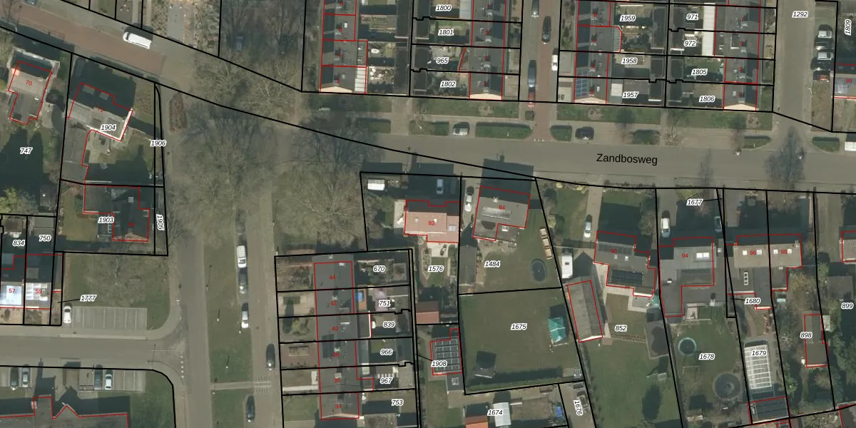 Zandbosweg 82 is gelegen op kadastraal perceel DNE00M1576. Deze kadastrale aanduiding is uniek en wordt gebruikt door het Kadaster om eigendomsrechten en andere zakelijke rechten vast te leggen. Het perceel maakt onderdeel uit van de kadastrale gemeente Deurne.