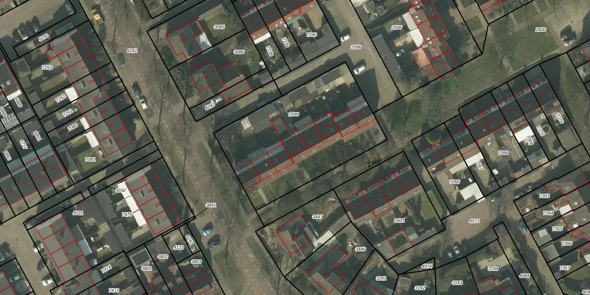 Zwin 7 is gelegen op kadastraal perceel DNE00L2599. Deze kadastrale aanduiding is uniek en wordt gebruikt door het Kadaster om eigendomsrechten en andere zakelijke rechten vast te leggen. Het perceel maakt onderdeel uit van de kadastrale gemeente Deurne.