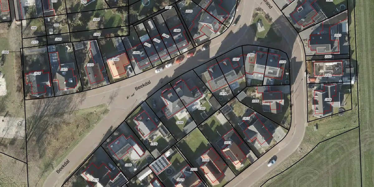 Gebruik de zoekbalk of klik op een perceel voor informatie over de adressen binnen dit perceel.