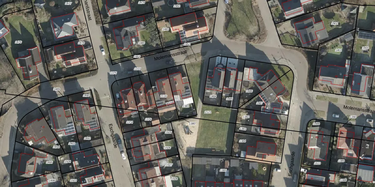 Gebruik de zoekbalk of klik op een perceel voor informatie over de adressen binnen dit perceel.