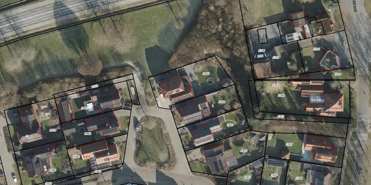 Het perceel waarop Molemansstraat 37 staat heeft een oppervlakte van 730 m². Dit is een groot perceel. De perceeloppervlakte wordt geregistreerd door het Kadaster. Gedetailleerde informatie over de maten van dit perceel kunt u vinden in het rapport Kadastrale kaart met maatvoering van Molemansstraat 37.