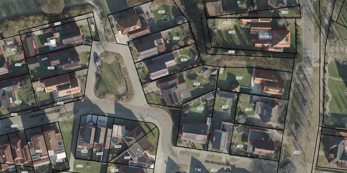 Het perceel waarop Molemansstraat 43 staat heeft een oppervlakte van 694 m². Dit is een groot perceel. De perceeloppervlakte wordt geregistreerd door het Kadaster. Gedetailleerde informatie over de maten van dit perceel kunt u vinden in het rapport Kadastrale kaart met maatvoering van Molemansstraat 43.