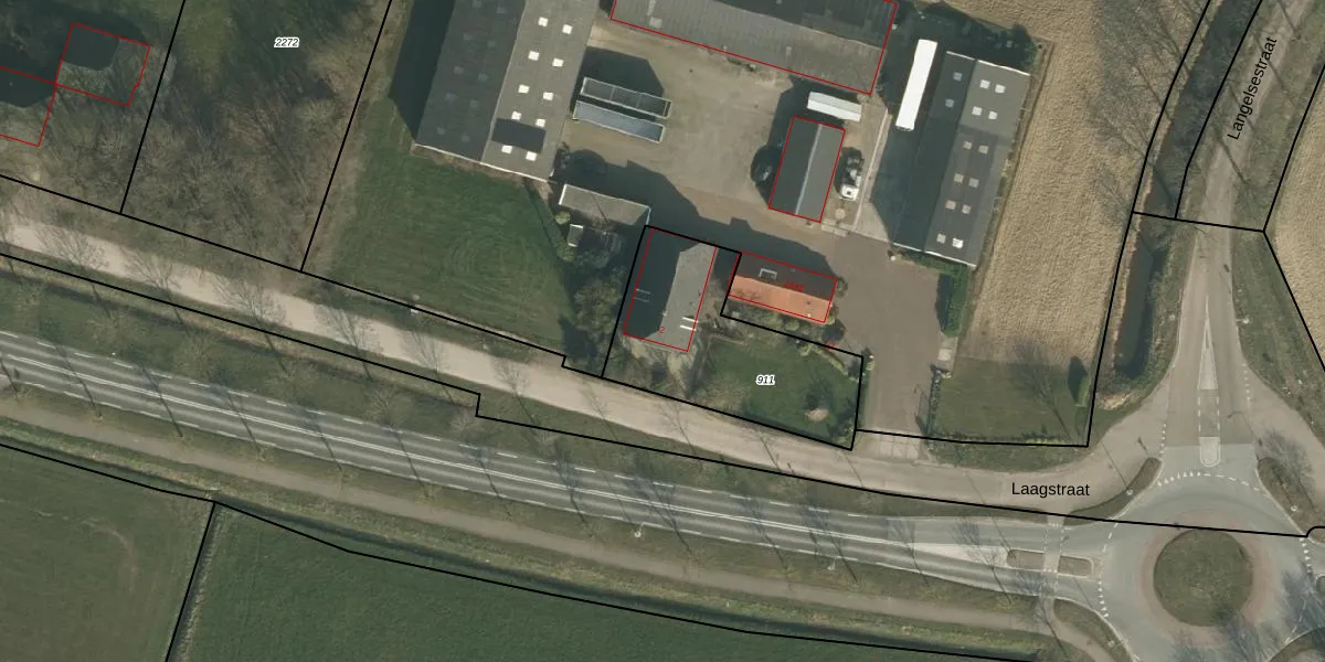 Laagstraat 2 is gelegen op kadastraal perceel RVS00D911. Deze kadastrale aanduiding is uniek en wordt gebruikt door het Kadaster om eigendomsrechten en andere zakelijke rechten vast te leggen. Het perceel maakt onderdeel uit van de kadastrale gemeente Ravenstein.
