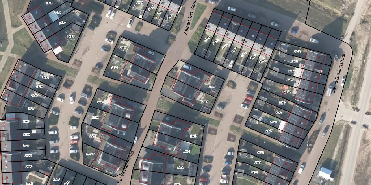 Gebruik de zoekbalk of klik op een perceel voor informatie over de adressen binnen dit perceel.