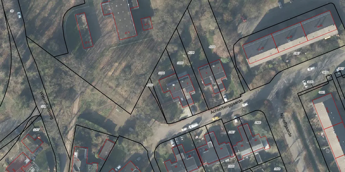 Het perceel waarop Achterberggaarde 1 staat heeft een oppervlakte van 534 m². Dit is een groot perceel. De perceeloppervlakte wordt geregistreerd door het Kadaster. Gedetailleerde informatie over de maten van dit perceel kunt u vinden in het rapport Kadastrale kaart met maatvoering van Achterberggaarde 1.