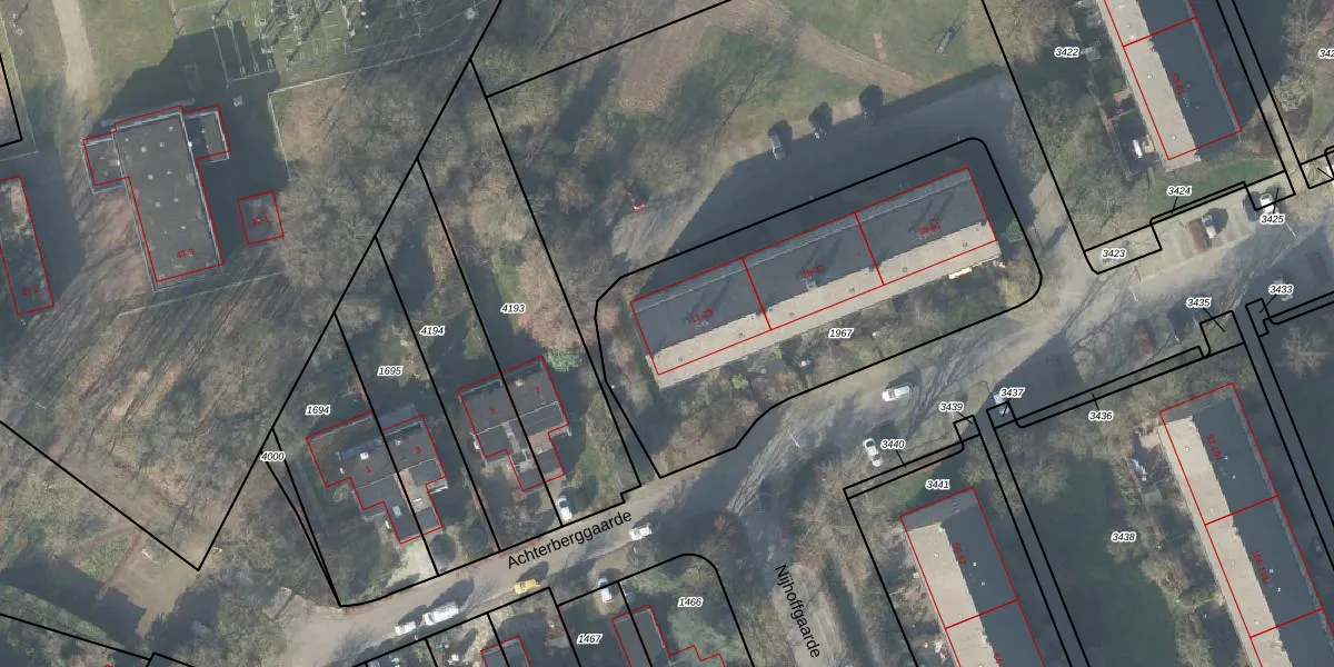 Het perceel waarop Achterberggaarde 15 staat heeft een oppervlakte van 1748 m². Dit is een zeer groot perceel. De perceeloppervlakte wordt geregistreerd door het Kadaster. Gedetailleerde informatie over de maten van dit perceel kunt u vinden in het rapport Kadastrale kaart met maatvoering van Achterberggaarde 15.