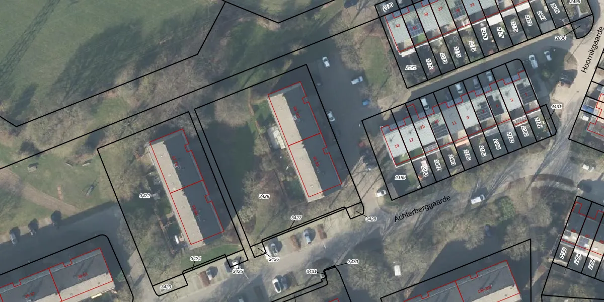Het perceel waarop Achterberggaarde 89 staat heeft een oppervlakte van 1919 m². Dit is een zeer groot perceel. De perceeloppervlakte wordt geregistreerd door het Kadaster. Gedetailleerde informatie over de maten van dit perceel kunt u vinden in het rapport Kadastrale kaart met maatvoering van Achterberggaarde 89.