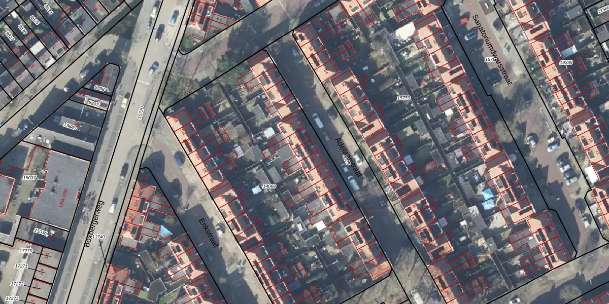 Het perceel waarop Adelaarstraat 67 staat heeft een oppervlakte van 3388 m². Dit is een zeer groot perceel. De perceeloppervlakte wordt geregistreerd door het Kadaster. Gedetailleerde informatie over de maten van dit perceel kunt u vinden in het rapport Kadastrale kaart met maatvoering van Adelaarstraat 67.