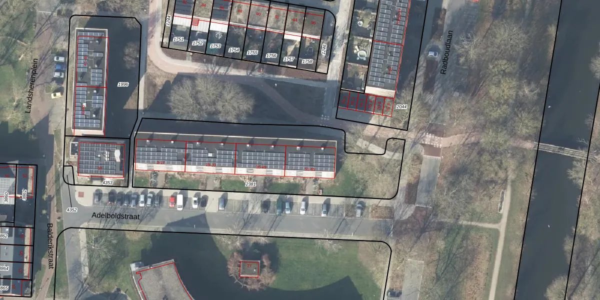 Het perceel waarop Adelboldstraat 57 staat heeft een oppervlakte van 1895 m². Dit is een zeer groot perceel. De perceeloppervlakte wordt geregistreerd door het Kadaster. Gedetailleerde informatie over de maten van dit perceel kunt u vinden in het rapport Kadastrale kaart met maatvoering van Adelboldstraat 57.