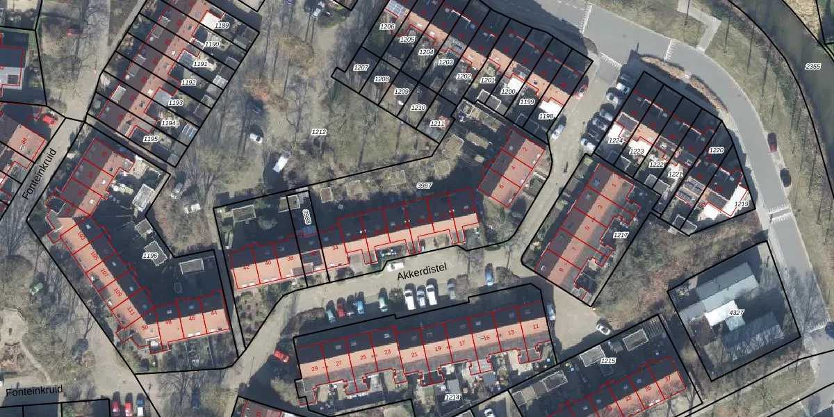 Het perceel waarop Akkerdistel 18 staat heeft een oppervlakte van 1909 m². Dit is een zeer groot perceel. De perceeloppervlakte wordt geregistreerd door het Kadaster. Gedetailleerde informatie over de maten van dit perceel kunt u vinden in het rapport Kadastrale kaart met maatvoering van Akkerdistel 18.