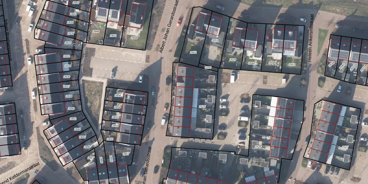Het perceel waarop Albert Johan Gerardsstraat 63 staat heeft een oppervlakte van 951 m². Dit is een groot perceel. De perceeloppervlakte wordt geregistreerd door het Kadaster. Gedetailleerde informatie over de maten van dit perceel kunt u vinden in het rapport Kadastrale kaart met maatvoering van Albert Johan Gerardsstraat 63.