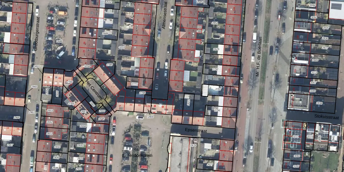 Het perceel waarop Almensestraat 31 staat heeft een oppervlakte van 3543 m². Dit is een zeer groot perceel. De perceeloppervlakte wordt geregistreerd door het Kadaster. Gedetailleerde informatie over de maten van dit perceel kunt u vinden in het rapport Kadastrale kaart met maatvoering van Almensestraat 31.