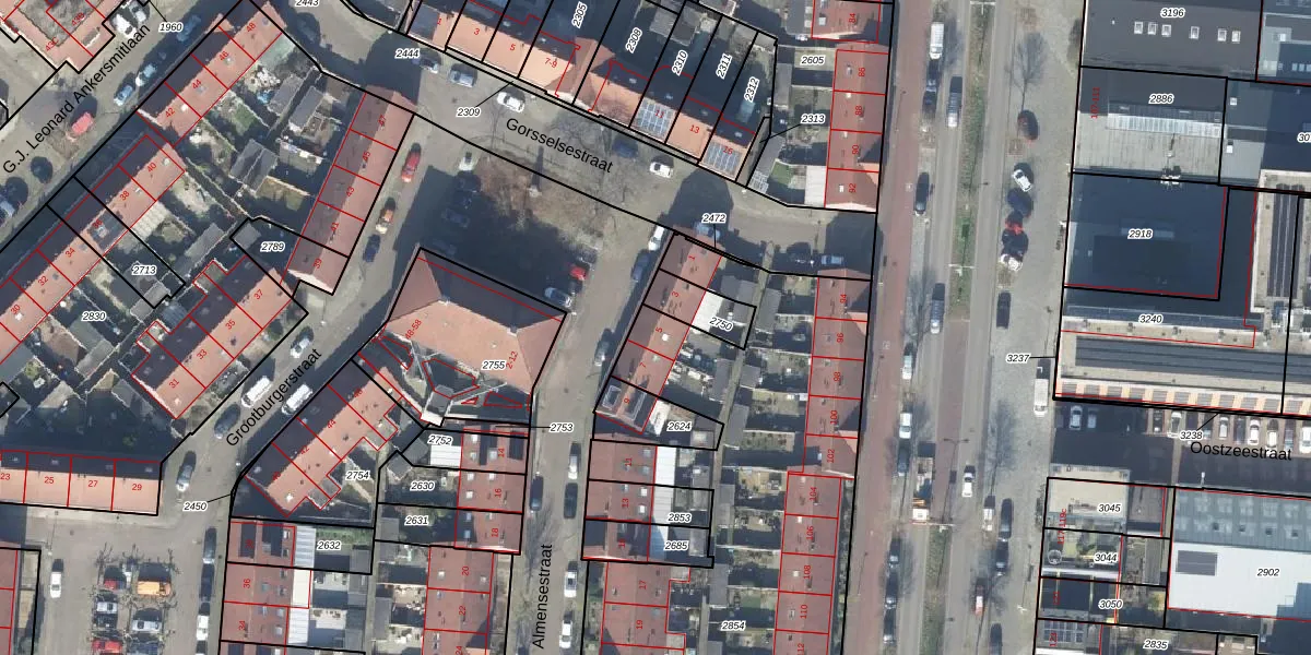 Het perceel waarop Almensestraat 5 staat heeft een oppervlakte van 3543 m². Dit is een zeer groot perceel. De perceeloppervlakte wordt geregistreerd door het Kadaster. Gedetailleerde informatie over de maten van dit perceel kunt u vinden in het rapport Kadastrale kaart met maatvoering van Almensestraat 5.