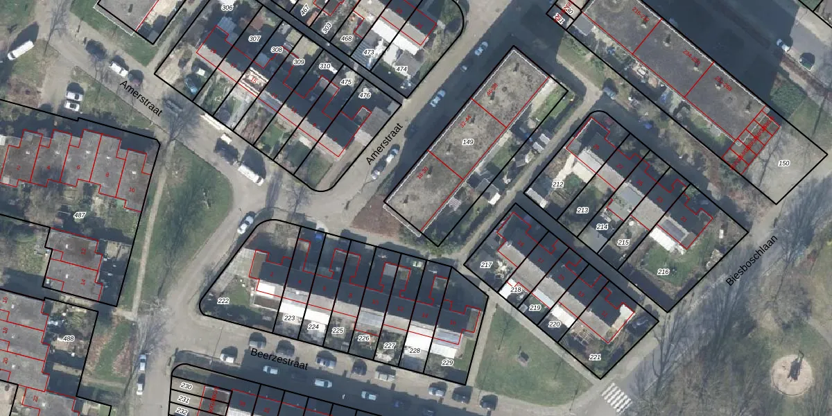 Het perceel waarop Amerstraat 22 staat heeft een oppervlakte van 825 m². Dit is een groot perceel. De perceeloppervlakte wordt geregistreerd door het Kadaster. Gedetailleerde informatie over de maten van dit perceel kunt u vinden in het rapport Kadastrale kaart met maatvoering van Amerstraat 22.
