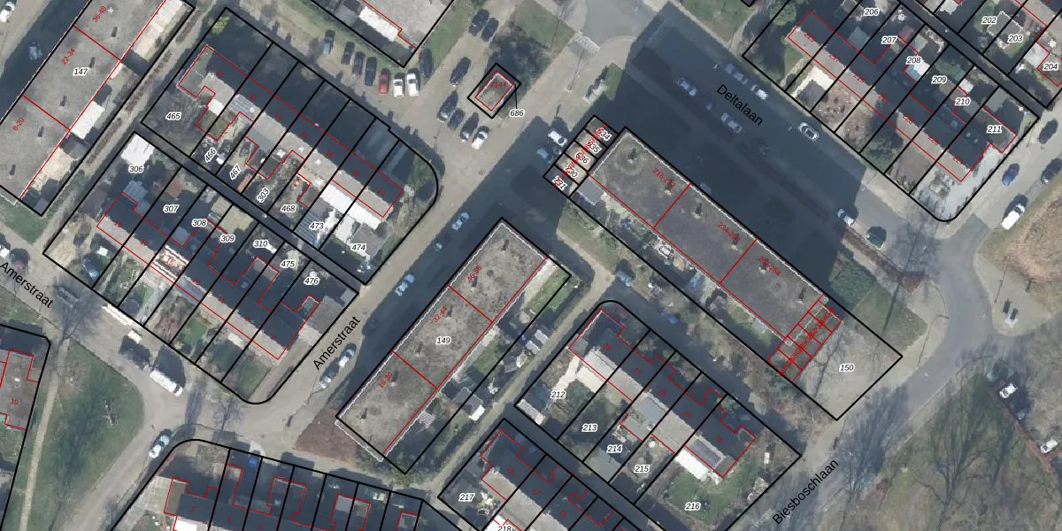 Het perceel waarop Amerstraat 52 staat heeft een oppervlakte van 825 m². Dit is een groot perceel. De perceeloppervlakte wordt geregistreerd door het Kadaster. Gedetailleerde informatie over de maten van dit perceel kunt u vinden in het rapport Kadastrale kaart met maatvoering van Amerstraat 52.