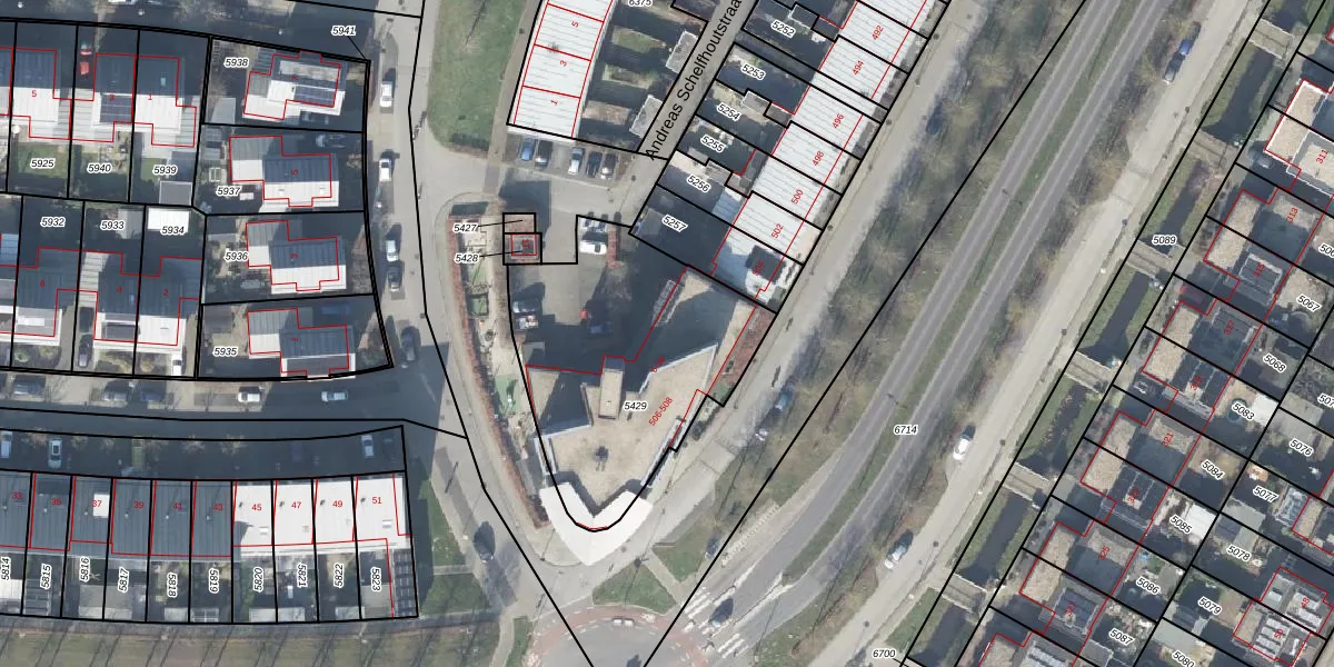 Het perceel waarop Andreas Schelfhoutstraat 32 staat heeft een oppervlakte van 1094 m². Dit is een zeer groot perceel. De perceeloppervlakte wordt geregistreerd door het Kadaster. Gedetailleerde informatie over de maten van dit perceel kunt u vinden in het rapport Kadastrale kaart met maatvoering van Andreas Schelfhoutstraat 32.