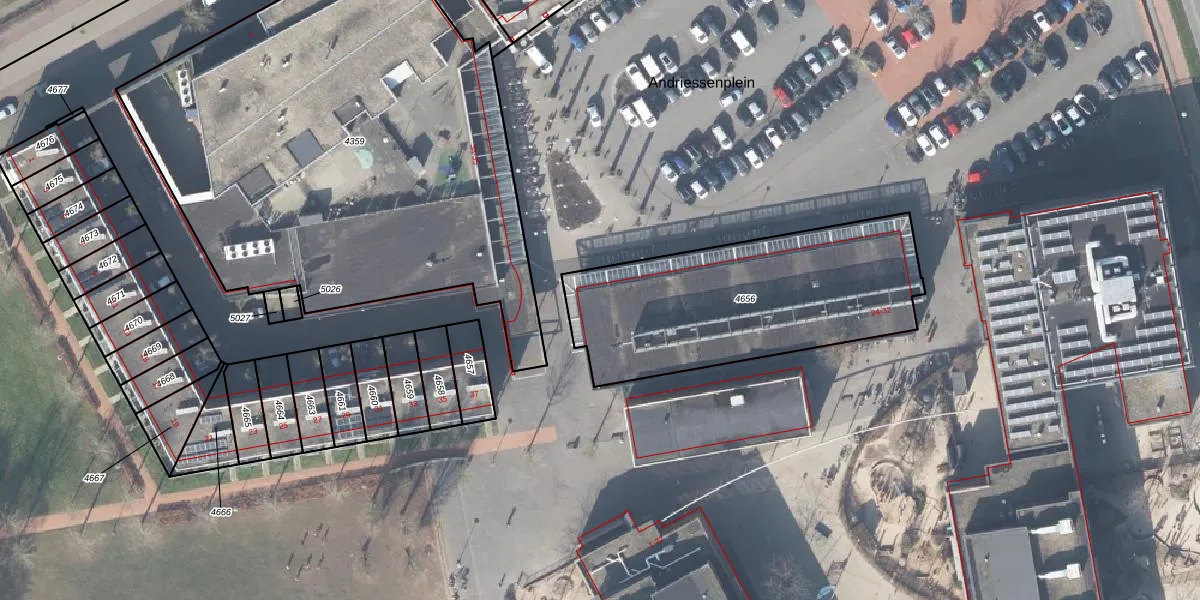 Het perceel waarop Andriessenplein 32 staat heeft een oppervlakte van 1119 m². Dit is een zeer groot perceel. De perceeloppervlakte wordt geregistreerd door het Kadaster. Gedetailleerde informatie over de maten van dit perceel kunt u vinden in het rapport Kadastrale kaart met maatvoering van Andriessenplein 32.