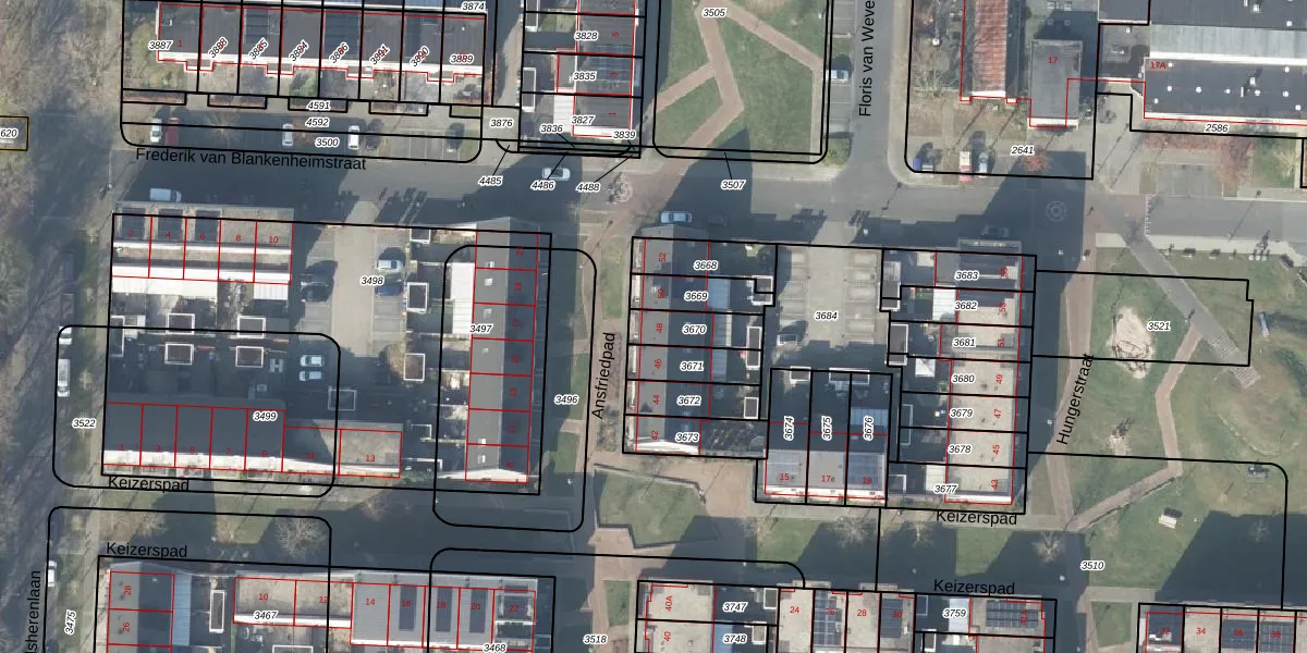Het perceel waarop Ansfriedpad 48 staat heeft een oppervlakte van 111 m². Dit is een middelgroot perceel. De perceeloppervlakte wordt geregistreerd door het Kadaster. Gedetailleerde informatie over de maten van dit perceel kunt u vinden in het rapport Kadastrale kaart met maatvoering van Ansfriedpad 48.