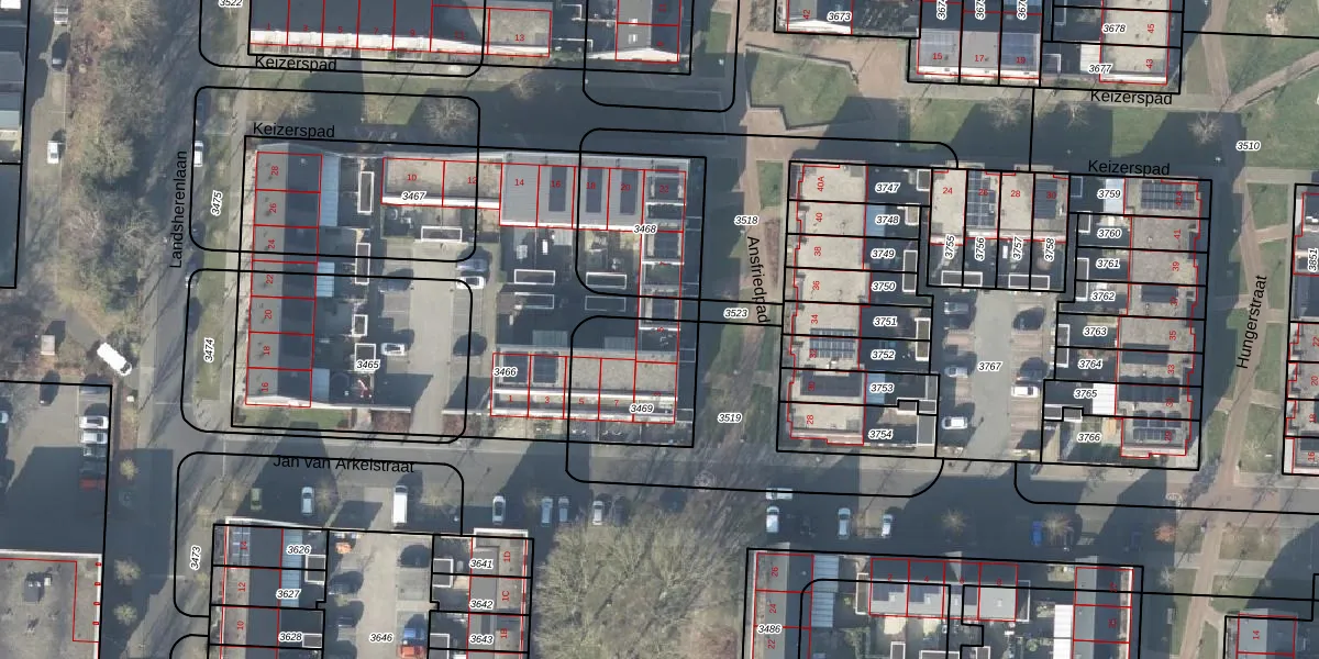 Het perceel waarop Ansfriedpad 5 staat heeft een oppervlakte van 360 m². Dit is een groot perceel. De perceeloppervlakte wordt geregistreerd door het Kadaster. Gedetailleerde informatie over de maten van dit perceel kunt u vinden in het rapport Kadastrale kaart met maatvoering van Ansfriedpad 5.