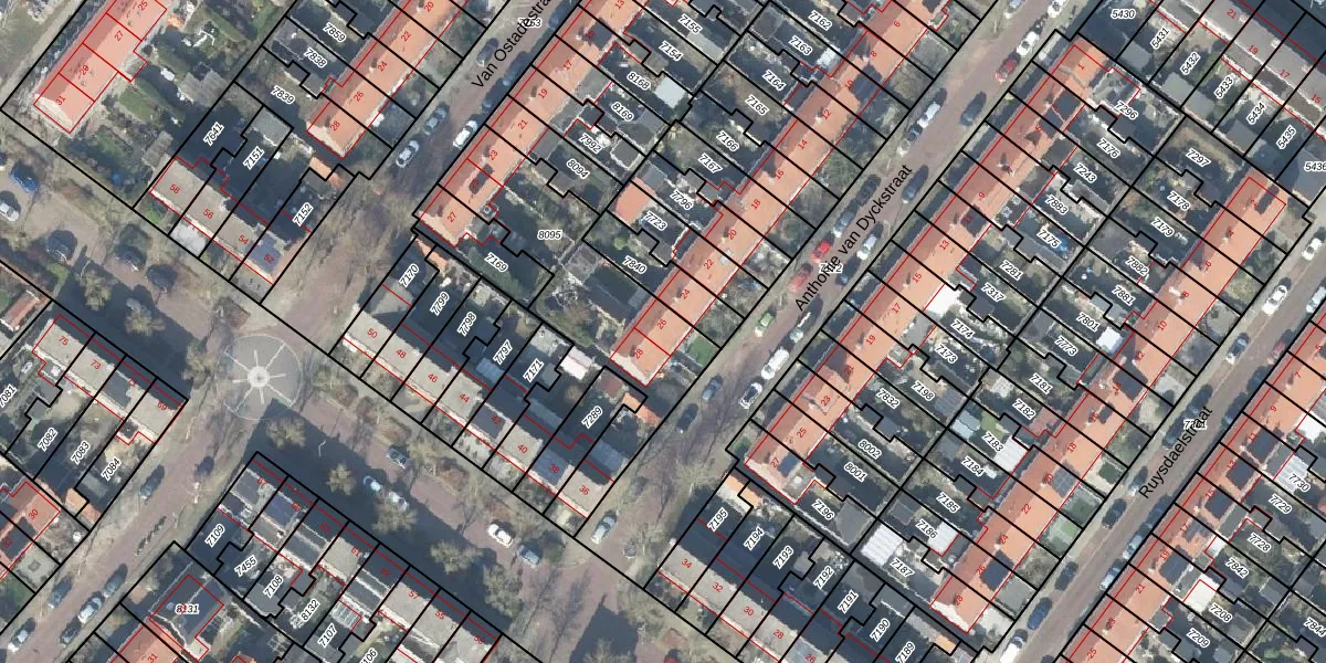 Het perceel waarop Anthonie van Dyckstraat 26 staat heeft een oppervlakte van 872 m². Dit is een groot perceel. De perceeloppervlakte wordt geregistreerd door het Kadaster. Gedetailleerde informatie over de maten van dit perceel kunt u vinden in het rapport Kadastrale kaart met maatvoering van Anthonie van Dyckstraat 26.