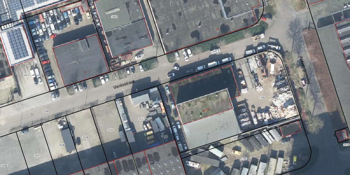 Het perceel waarop Antwerpenweg 14-T staat heeft een oppervlakte van 2913 m². Dit is een zeer groot perceel. De perceeloppervlakte wordt geregistreerd door het Kadaster. Gedetailleerde informatie over de maten van dit perceel kunt u vinden in het rapport Kadastrale kaart met maatvoering van Antwerpenweg 14-T.