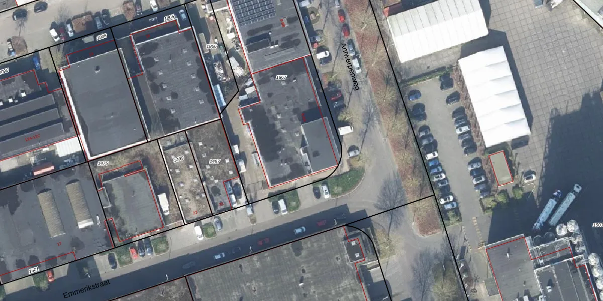 Het perceel waarop Antwerpenweg 6 staat heeft een oppervlakte van 2102 m². Dit is een zeer groot perceel. De perceeloppervlakte wordt geregistreerd door het Kadaster. Gedetailleerde informatie over de maten van dit perceel kunt u vinden in het rapport Kadastrale kaart met maatvoering van Antwerpenweg 6.
