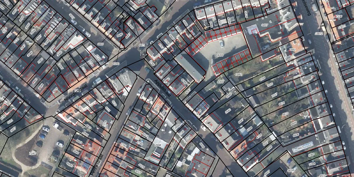 Gebruik de zoekbalk of klik op een perceel voor informatie over de adressen binnen dit perceel.