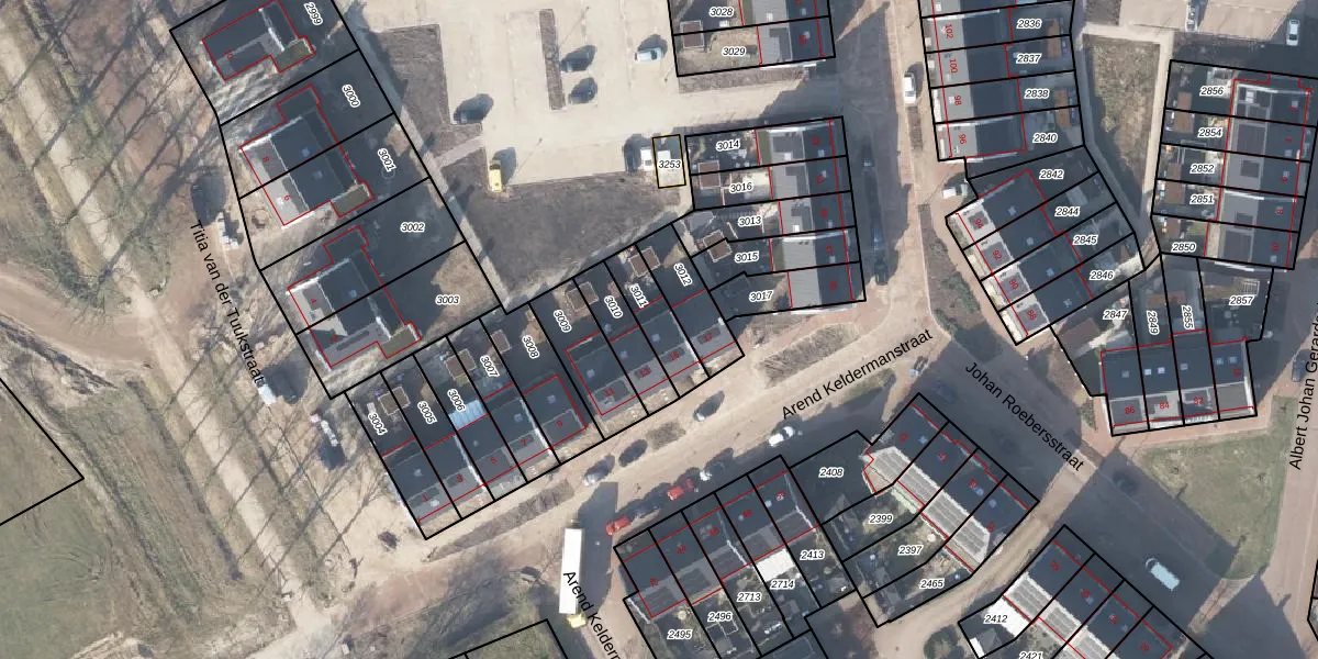 Gebruik de zoekbalk of klik op een perceel voor informatie over de adressen binnen dit perceel.