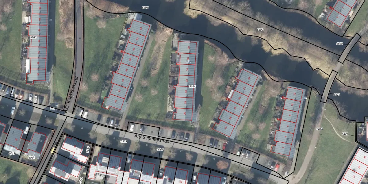 Het perceel waarop Ary Schefferstraat 30 staat heeft een oppervlakte van 6850 m². Dit is een zeer groot perceel. De perceeloppervlakte wordt geregistreerd door het Kadaster. Gedetailleerde informatie over de maten van dit perceel kunt u vinden in het rapport Kadastrale kaart met maatvoering van Ary Schefferstraat 30.