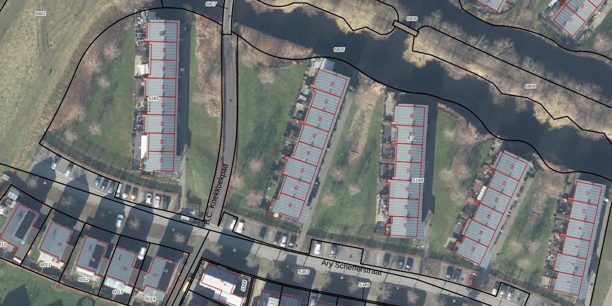 Het perceel waarop Ary Schefferstraat 46 staat heeft een oppervlakte van 6850 m². Dit is een zeer groot perceel. De perceeloppervlakte wordt geregistreerd door het Kadaster. Gedetailleerde informatie over de maten van dit perceel kunt u vinden in het rapport Kadastrale kaart met maatvoering van Ary Schefferstraat 46.