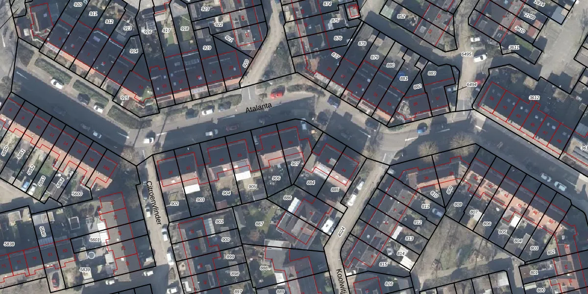 Het perceel waarop Atalanta 30 staat heeft een oppervlakte van 189 m². Dit is een middelgroot perceel. De perceeloppervlakte wordt geregistreerd door het Kadaster. Gedetailleerde informatie over de maten van dit perceel kunt u vinden in het rapport Kadastrale kaart met maatvoering van Atalanta 30.