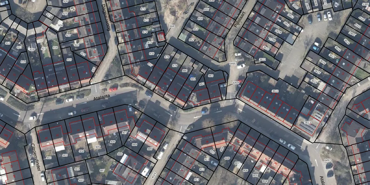 Gebruik de zoekbalk of klik op een perceel voor informatie over de adressen binnen dit perceel.