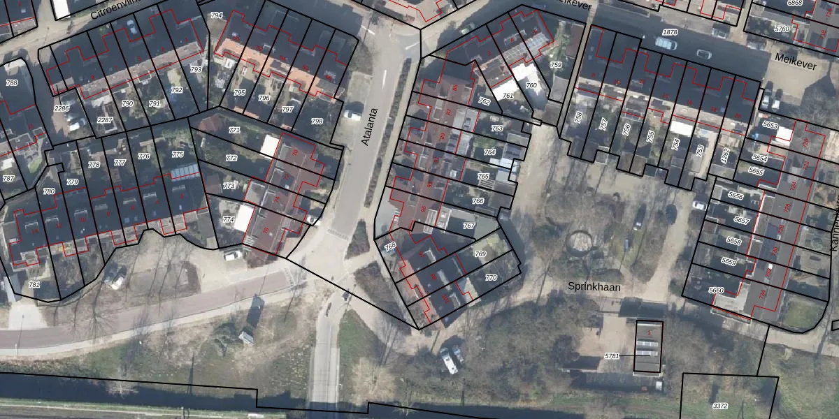 Het perceel waarop Atalanta 95 staat heeft een oppervlakte van 208 m². Dit is een middelgroot perceel. De perceeloppervlakte wordt geregistreerd door het Kadaster. Gedetailleerde informatie over de maten van dit perceel kunt u vinden in het rapport Kadastrale kaart met maatvoering van Atalanta 95.