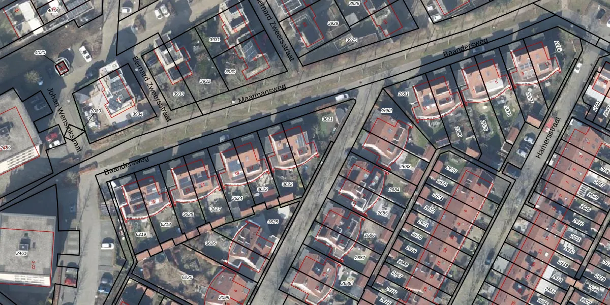 Baandersweg 13 is gelegen op kadastraal perceel DVT00L3621. Deze kadastrale aanduiding is uniek en wordt gebruikt door het Kadaster om eigendomsrechten en andere zakelijke rechten vast te leggen. Het perceel maakt onderdeel uit van de kadastrale gemeente Deventer.