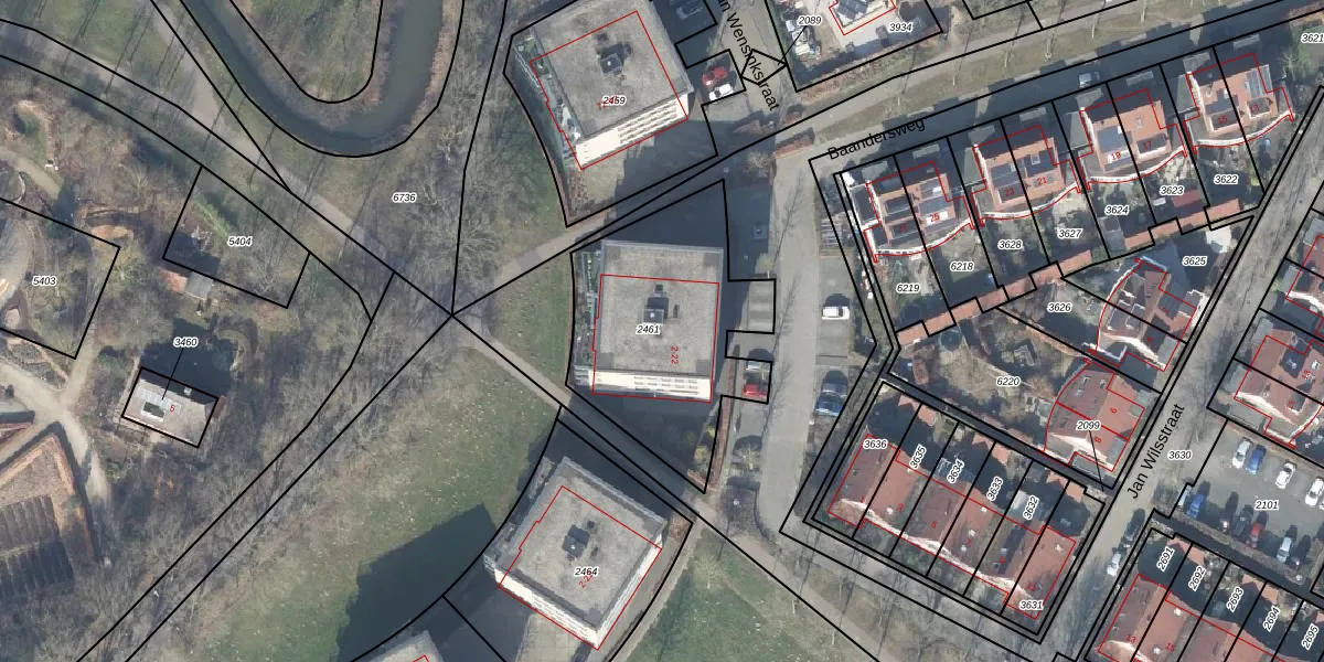 Baandersweg 14 is gelegen op kadastraal perceel DVT00L2461. Deze kadastrale aanduiding is uniek en wordt gebruikt door het Kadaster om eigendomsrechten en andere zakelijke rechten vast te leggen. Het perceel maakt onderdeel uit van de kadastrale gemeente Deventer.