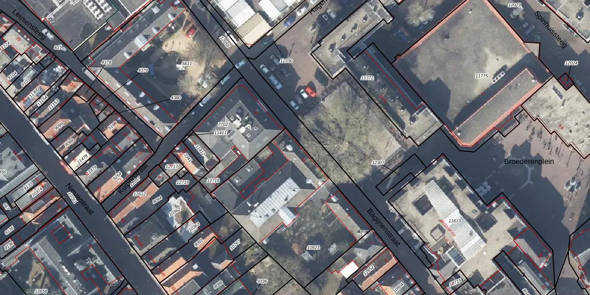 Het perceel waarop Bagijnenstraat 11 staat heeft een oppervlakte van 1452 m². Dit is een zeer groot perceel. De perceeloppervlakte wordt geregistreerd door het Kadaster. Gedetailleerde informatie over de maten van dit perceel kunt u vinden in het rapport Kadastrale kaart met maatvoering van Bagijnenstraat 11.