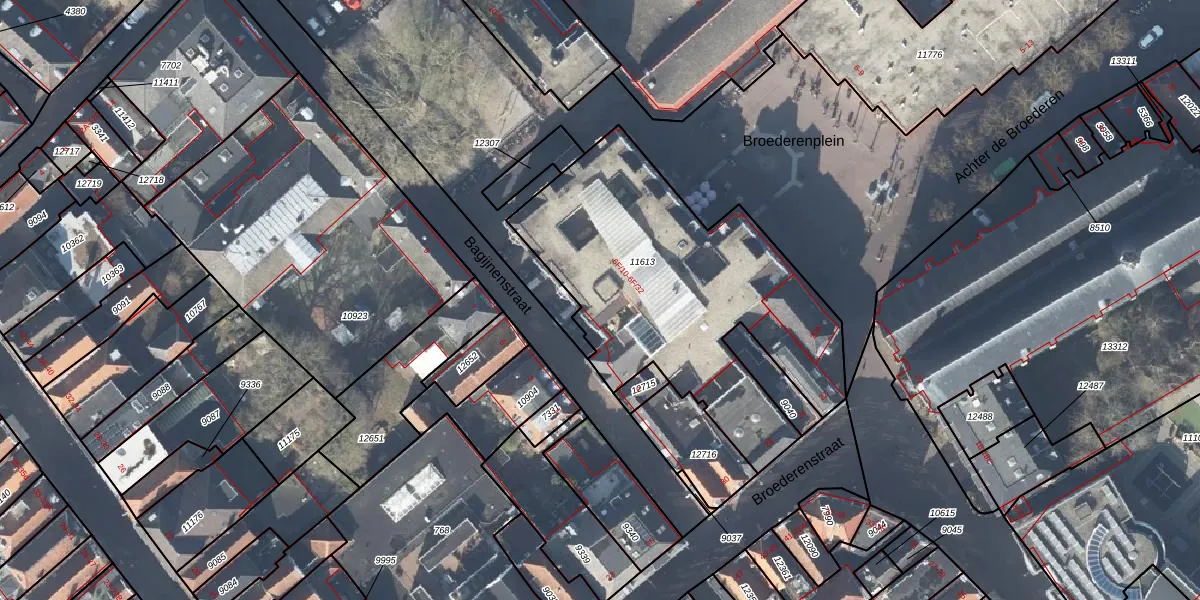 Het perceel waarop Bagijnenstraat 6-F-13 staat heeft een oppervlakte van 1550 m². Dit is een zeer groot perceel. De perceeloppervlakte wordt geregistreerd door het Kadaster. Gedetailleerde informatie over de maten van dit perceel kunt u vinden in het rapport Kadastrale kaart met maatvoering van Bagijnenstraat 6-F-13.