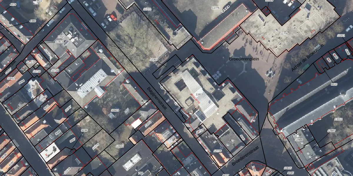 Het perceel waarop Bagijnenstraat 6-F-17 staat heeft een oppervlakte van 1550 m². Dit is een zeer groot perceel. De perceeloppervlakte wordt geregistreerd door het Kadaster. Gedetailleerde informatie over de maten van dit perceel kunt u vinden in het rapport Kadastrale kaart met maatvoering van Bagijnenstraat 6-F-17.