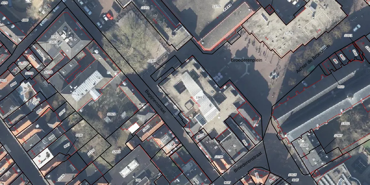 Het perceel waarop Bagijnenstraat 6-F-24 staat heeft een oppervlakte van 1550 m². Dit is een zeer groot perceel. De perceeloppervlakte wordt geregistreerd door het Kadaster. Gedetailleerde informatie over de maten van dit perceel kunt u vinden in het rapport Kadastrale kaart met maatvoering van Bagijnenstraat 6-F-24.