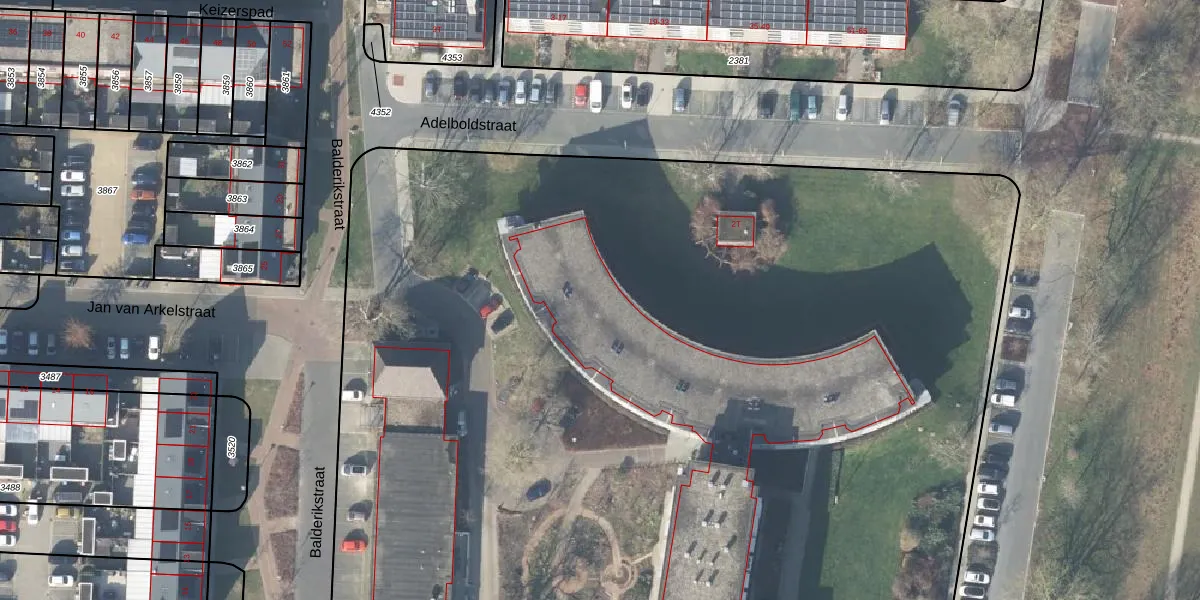 Het perceel waarop Balderikstraat 54 staat heeft een oppervlakte van 1,8 ha. Dit is een zeer groot perceel. De perceeloppervlakte wordt geregistreerd door het Kadaster. Gedetailleerde informatie over de maten van dit perceel kunt u vinden in het rapport Kadastrale kaart met maatvoering van Balderikstraat 54.