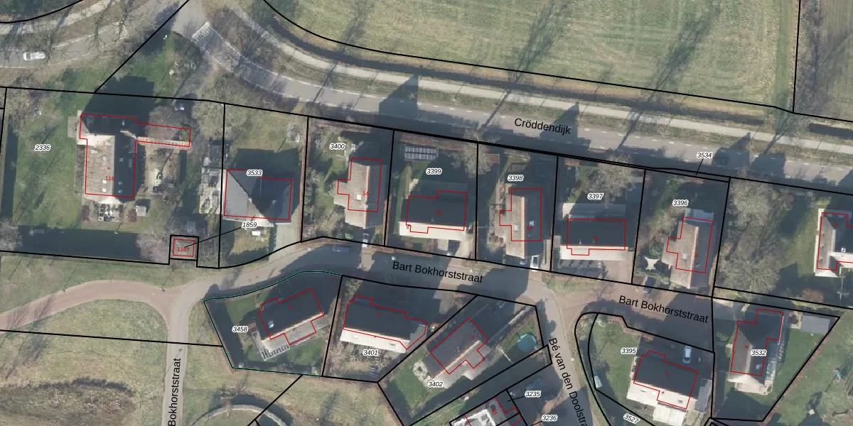 Het perceel waarop Bart Bokhorststraat 12 staat heeft een oppervlakte van 566 m². Dit is een groot perceel. De perceeloppervlakte wordt geregistreerd door het Kadaster. Gedetailleerde informatie over de maten van dit perceel kunt u vinden in het rapport Kadastrale kaart met maatvoering van Bart Bokhorststraat 12.